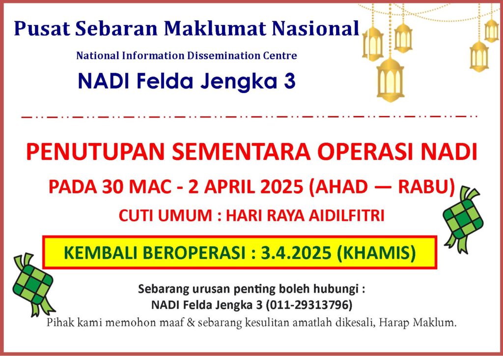 NOTIS TUTUP NADI Felda Jengka 3 sempena Cuti Hari Raya Aidilfitri.